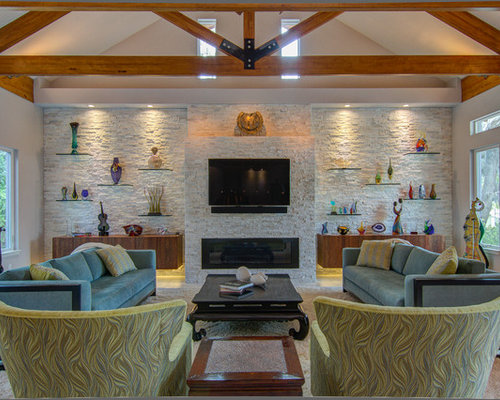 Background. 7+ bewitching floating shelves kitchen pictures ideas. Modern fireplace wall has herringbone tile pattern and custom wood shelving.